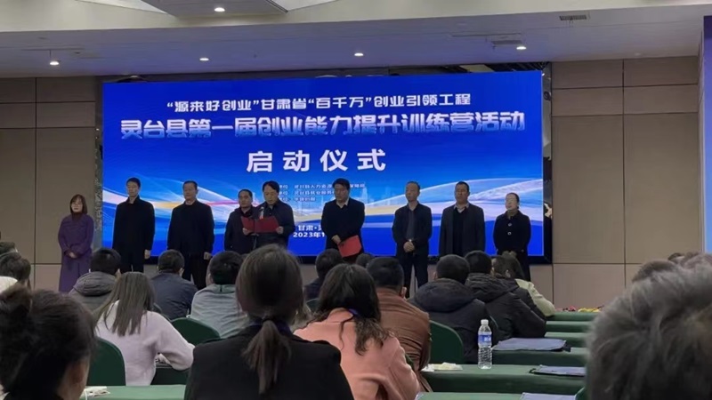 11月29日,“源來(lái)好創(chuàng)業(yè)”甘肅省“百千萬(wàn)”創(chuàng)業(yè)引領(lǐng)工程靈臺(tái)縣第一屆創(chuàng)業(yè)能力提升訓(xùn)練營(yíng)啟動(dòng)儀式在市級(jí)創(chuàng)業(yè)孵化基地靈臺(tái)縣正宇建筑公司會(huì)議室隆重舉行??h委常委、縣委組織部部長(zhǎng)李逢春同志應(yīng)邀出席儀式并講話,縣政府就業(yè)工作領(lǐng)導(dǎo)小組成員單位分管負(fù)責(zé)同志和各鄉(xiāng)鎮(zhèn)及縣城市社區(qū)領(lǐng)隊(duì)、參訓(xùn)學(xué)員共110多人參加活動(dòng)。
